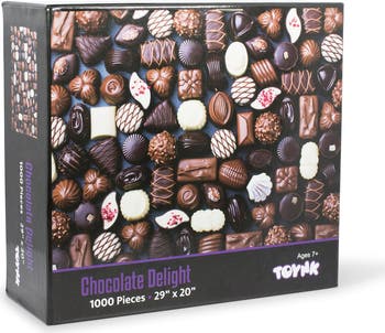 Satisfy your sweet tooth with this yummy jigsaw puzzle that features an array of chocolatey treats. This candy puzzle measures 29 x 20 inches, which is perfect for displaying in your home or office. Jigsaw puzzles like this gem will keep you busy and are great for sharing with loved ones.