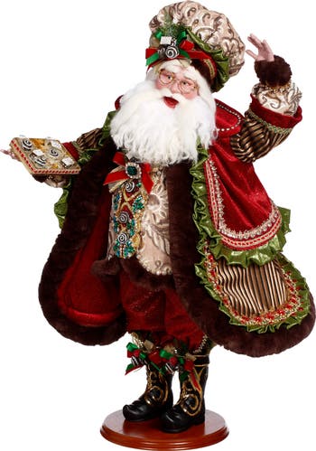 Meet the Mark Roberts Chocolatier Santa, a whimsical holiday collectible dressed in rich, candy-inspired fabrics with luxe trims and sparkling details. He carries delightful chocolatier touches—think sweet treats, ribbons, and playful accessories—that make him feel like he stepped out of a Christmas confectionery. Perfect for mantels, entry tables, or under the tree, this Santa adds a warm, gourmet-holiday charm to any seasonal display.