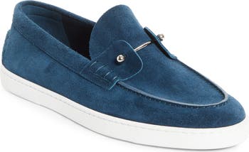 The French label brings bold hardware shine to the minimalist silhouette of this suede loafer detailed with a ball-stud bit. Christian Louboutin s iconic red sole—born from a fateful brush with nail lacquer—adds a burst of signature color to every step.