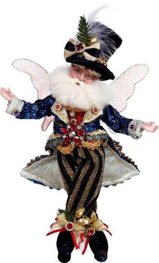 A Mark Roberts “Christmas in the City” fairy wearing a top hat is the definition of uptown sparkle—part whimsical, part wonderfully dapper. Dressed in luxe holiday fabrics with glittering city-chic accents, this fairy pairs delicate wings and festive flair with a classic top hat for a dash of Broadway magic. Perfect for adding playful elegance to a tree, mantel, or tabletop scene, it feels like Christmas carols drifting through a snowy downtown night.
