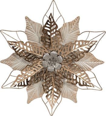 Christmas Poinsettia Wall Hanging Gold Decorative Art Sculpture 18"
