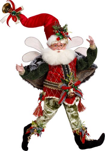 Mark Roberts Christmas Spirit Fairy is a dazzling collectible adorned in rich holiday fabrics, sparkling trims, and meticulous hand-finished details. With a whimsical expression and elegant wings, she brings a magical, storybook charm to any Christmas tree, mantel, or tabletop display. Designed with signature Mark Roberts artistry and poise, she’s a radiant keepsake that adds festive wonder year after year.