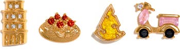 When not in Rome bring the charm of Italy to you with this whimsical stud earrings set depicting la dolce vita.