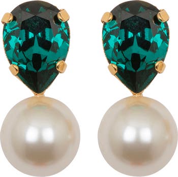 Pear-cut Austrian crystals pair with faux pearls in these handcrafted drop earrings that are stunning in their simplicity.