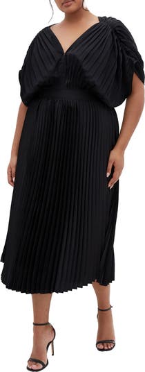 Lots of pleats give statement-making movement to this elegant dress made of soft satin.