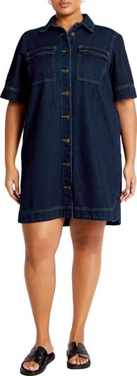 Amp up your casual-cool game in this staple denim dress updated in a dark wash for day-to-night appeal.