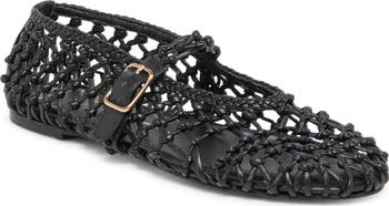 Knotted straps add ample texture to this round-toe flat topped with a classic mary jane strap.