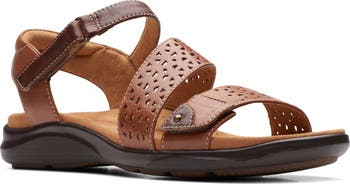 Laser-cut straps keep air flowing through this adjustable leather sandal featuring antimicrobial lining and a targeted Contour Cushion footbed.