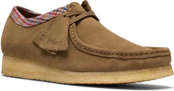 Contrast trim at the collar remixes the fan-favorite suede Wallabee characterized by a signature pebble crepe sole and hand-stitched apron seam.