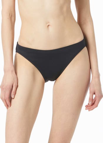 A classic fit bikini bottom with moderate coverage in classic solids. Mix and match with solid swim tops or coordinate with a variety of prints.
