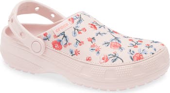 Embroidered flowers brighten this woven canvas clog framed by a swiveling slingback strap and the brand s signature lightweight grip sole. The perforated heel strap is compatible with Jibbitz™ charms for a personalized look.