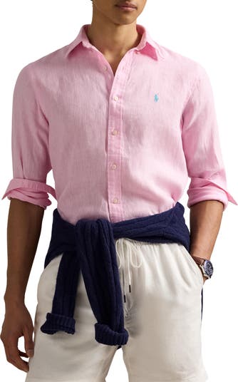 Classic Fit Solid Pink Linen Button-Down Shirt