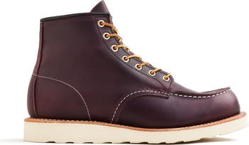 The 6-inch Classic Moc is synonymous with Red Wing Heritage. The boot s unmistakable moc toe and Traction Tred outsole form a silhouette that sets the standard by which all others are measured. Black Cherry Excalibur provides a beautiful casting of undertones after break-in allowing the full-grain leather to shine.