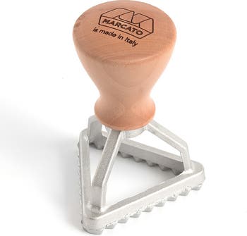 Bring a geometric twist to your pasta creations with the Marcato Classic Ravioli Maker Stamp, Triangle, 2-Inch. This expertly crafted Italian tool allows you to shape delightful triangle ravioli with precision and ease. Featuring a robust aluminum cutting edge for sharp, clean lines, and a comfortable wooden handle, it’s perfect for home cooks and professionals alike. Whether adding a creative angle to your ravioli, or making unique pastries and cookies, this triangular stamp is a fun and functional addition to any kitchen.