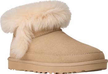 Taking inspiration from nostalgic moments in the mountains, this boot is made from rich suede and topped with a cuff of plush shearling. For extra warmth, the boot is lined with cozy UGGplush, a moisture-wicking textile crafted from a wool-rich blend designed to feel and wear like genuine shearling.