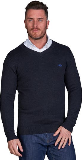 This classic men s v-neck sweater is made from a premium soft, high-quality cotton cashmere blend, making it both stylish and hardwearing. With a classic fit, long cuffed sleeves, and a contrast-colored embroidered logo on the chest, this sweater is the perfect companion for a shirt and is ideal for day-to-day style, from casual to smart. Perfect for layering, it offers longevity and comfort.