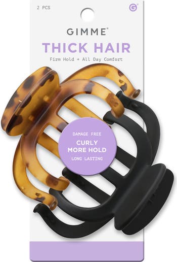 Meet your new favorite hair accessorythe Gimme Thick Hair Claw Clips, thoughtfully designed for curly, textured, and thick hair types. These break-resistant non-slide clips are crafted from durable plastic with 30% recycled materials, combining environmental consciousness with uncompromising performance. The innovative claw design provides an exceptional hold for even the most voluminous hair types, ensuring your style stays securely in place all day long. Unlike traditional clips that slip and slide, these claw clips feature a specialized grip that maintains its hold without creating tension or discomfort. The carefully engineered design distributes pressure evenly, eliminating the tugging and pulling often associated with standard hair clips. Each clip snaps firmly into place, providing reliable security while being gentle on your natural texture and scalp. The substantial size and strong construction make these clips perfect for thick, curly, and textured hair types that typically overwhelm standard clips. Whether you re creating an effortless updo or securing your hair for everyday activities, these clips deliver consistent, comfortable performance. At Gimme Beauty, we believe hair solutions aren t one size fits all. We understand that each person s hair journey is unique, which is why we ve designed these hair ties to work for all hair types, helping you feel confident and unstoppable in your daily life. We celebrate the sisterhood that grows from our shared experiences with hair. While some brands focus on exclusivity, we believe in creating accessible, inclusive products that work for everyone. Our mission goes beyond hair accessorieswe re here to amplify your confidence because we know that confident women are unstoppable.