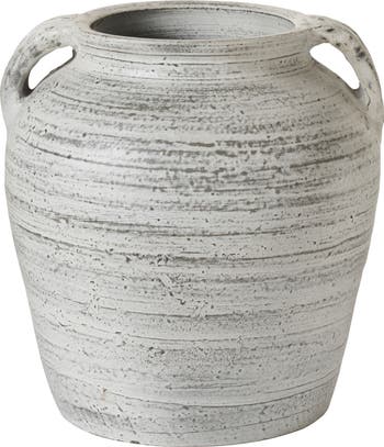 This beautifully designed vase is crafted with an antiqued painted finish and can hold flowers, branches or stand stylishly on its own.
