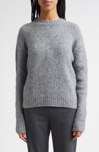 Paloma Lanna contemplates clothing as protection for fall 25, building everyday armor from soft separates like this crewneck sweater knit for round-the-clock comfort from a fuzzy, heavyweight yarn blend warmed with extrafine alpaca and mulesing-free wool.