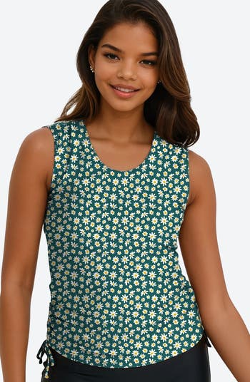 The Closed Back Maya Swim Top isn t your ordinary tankini—its high neckline and fully covered back offer a unique blend of style and comfort. Featuring a built-in bra for support and side ruching for a flattering silhouette, you ll look and feel your best. If in doubt, size up.
