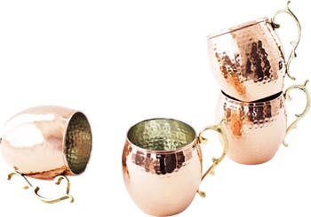 Tin-lined Handles based on a sketch by Beth AnnDesigned to be both beautiful and bold, our Vintage Copper Moscow Mule Mugs bring artisanal flair to your home bar. Each handle was hand-sketched by Beth Ann, inspired by traditional forms with a romantic, elevated twist. Dimensions: 3" Diameter x 3. 75" H Tin-lined for safety and crafted from durable copper, this set delivers a chill that’s perfect for classic mules, mocktails, or even hot cider. At Coppermill Kitchen, we specialize in vintage-inspired copper drinkware that combines heritage and hosting. Pair with linen cocktail napkins and a slice of lime for instant bar cart perfection. Hand wash and dry immediately to preserve the lining and shine.
