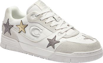 Glittery appliqués add star power to this leather-and-suede sneaker featuring heritage elements like a tonal sculpted C at the side and a logo patch at the tongue.