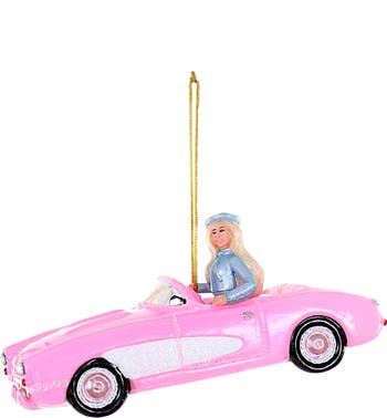 A pink paintjob and glitter detail gives makes this sweet ride the perfect addition to your holiday tree.