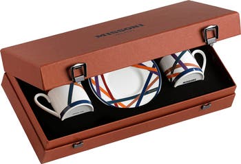 Coffee Cup Saucer NASTRI Set of 2 in Luxury Box Multicolor diam. 2.3", H 2.5", Cap. 4 oz, Saucer diam. 4.75"