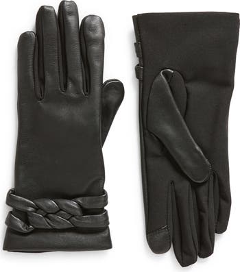 Bundle up without compromising on refinement with mixed-media gloves detailed with a braided leather strap and lined with feel-good recycled materials.