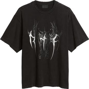 Cyber sigilism artwork informs the bold logo on this streetwise cotton T-shirt cut for a comfortably oversized fit.