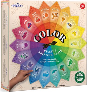 Introduce children to the wheel of color with this beautiful skill-building puzzle game. The game teaches children about colors and their color families. They can take turns spinning and collecting puzzle pieces until the color wheel is complete.