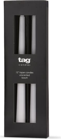 - Color Studio Set of 4 White 12 inch taper candles made of high quality paraffin wax with an 8 hour burn time each Elevate your home decor with the elegant Color Studio Set of 4 white taper candles. Wipe with a damp cloth to clean the candles and keep them looking pristine. Always keep the wick trimmed to 1/4 inch at all times for optimal burning. Trim the wick every 4 hours of burn time by extinguishing the flame and allowing the candle to cool to room temperature before relighting. Illuminate your gatherings this season with the Color Studio Set of 4 White Taper Candles crafted from high-quality paraffin wax featuring an impressive 8 hour burn time perfect for gift giving and enhancing any occasion with elegance and warmth.