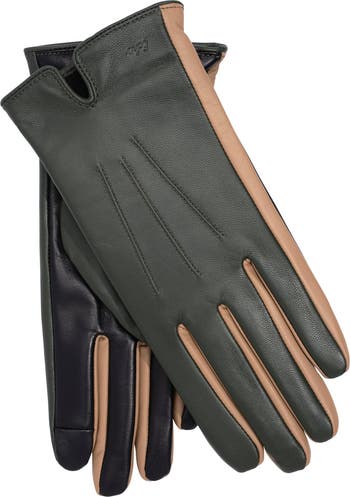 Colorblock Leather Glove — Expertly crafted from supple sheepskin leather with a soft wool lining, these gloves blend tactile luxury with bold colorblock detailing. Finished with touch-screen fingertips, they offer seamless elegance and modern functionality in every gesture.