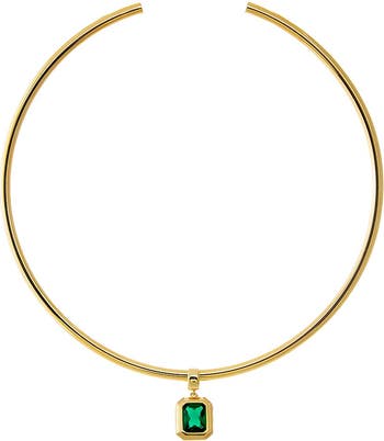 Colored CZ Emerald Bezel/ Solid Tube Open Collar Pendant Necklace