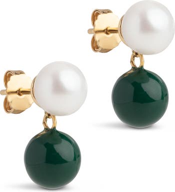 The Columba Stud from ENAMEL Copenhagen is an elegant, modern take on the classic pearl earring. A luminous white freshwater pearl sits on the ear, while a hand-painted enamel bead hangs delicately below — both in matching, softly rounded proportions that create a harmonious balance. The interplay between organic elegance and vibrant color results in a refined expression with a subtle edge. Perfect for those who love timeless design with a twist.