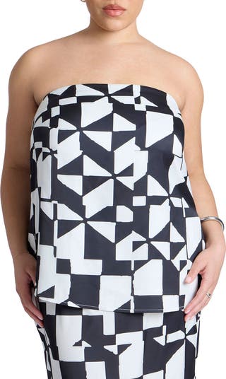 Cut from stretchy satin, this lightweight top held in place with elastic at the back bares your shoulders in a longline, columnar silhouette.