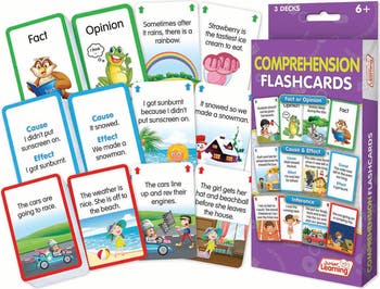 - This value pack of flash cards includes 3 sets of 54 cards for teaching comprehension.