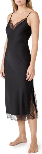 Outlined in eyelash-lace trim, this romantic nightgown is made of stretch-kissed satin that s supple and smooth.
