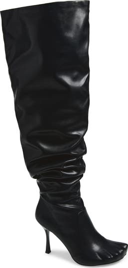 Let your toes feel the groove in a fashion-forward boot designed with an embossed, ridged toe and a superslouchy shaft.