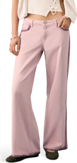Contrasting trim accentuates the wide-leg silhouette of nonstretch-denim jeans that are ready to elevate your off-duty style.