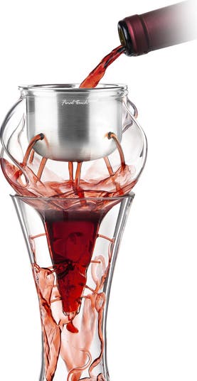 - Handmade glass aerator designed with unique Conundrum curves - removable stainless steel aeration bowl for easy washing.