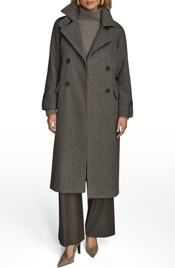 A scarf-optional wool-blend coat features a convertible collar that can be worn as traditional notched lapels or popped and buttoned into a neck-warming tall stand collar. Raglan sleeves further distinguish the cut and enhance the fit.