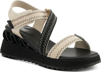 Webbed nylon straps with zigzagging stitches enhance the sporty vibe of an ultracool wedge sandal boasting a wave-cushioned heel and sawtooth grip sole.