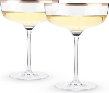 Sip champagne in a decidedly decadent fashion. Reputed to have a strong association with the likes of Marie Antoinette and prohibition-era indulgence, these copper-rimmed coupes are a charming throwback to old-fashioned elegance and persevering refinement.