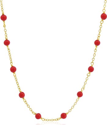 This bead necklace is the perfect pop of color to add to your jewelry collection! This piece can be worn on its own or layered with your favorite necklaces.