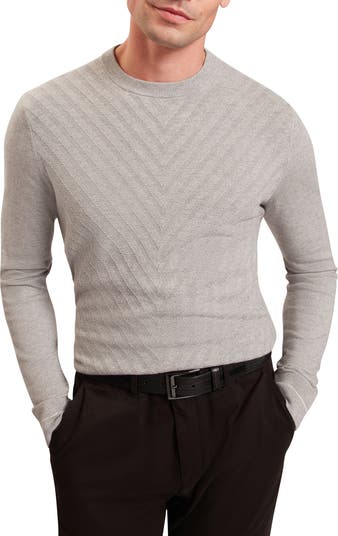 Ribbed chevrons ascend the front and subtly broaden the shoulders of a sweater knit from cotton and mercerized wool for a soft touch and a polished finish. Wear it on its own or layer it under something open to make a distinctive accent to any elevated look.