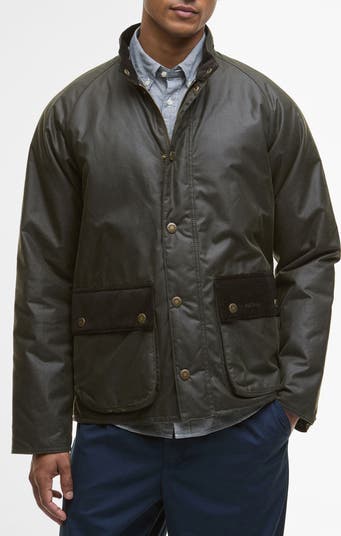 Corduroy tonally lines the collar and trims the pocket flaps on this entry into the Barbour pantheon of waxed-cotton coats that s sure to reliably keep you dry, warm and enviably sporting a heritage look.