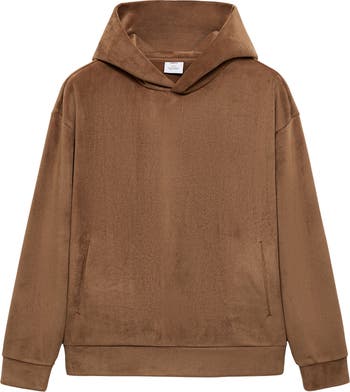 Plush corduroy brings cozy, cool-weather style to a roomy hoodie made with slouchy dropped shoulders and a boxy, relaxed fit.