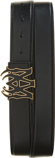 An enamel buckle featuring the signature monogram centers this leather belt with bold brand recognition.