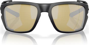 Rectangular sunglasses with sturdy temples and removable side shields boast polarized lenses to reduce glare for your adventures at sea.